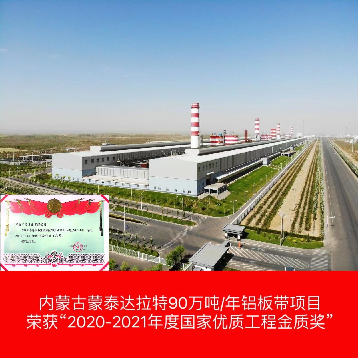 內(nèi)蒙古蒙泰達拉特90萬噸/年鋁板帶項目(一期50萬噸電解鋁工程)屬于內(nèi)蒙古積極響應國家循環(huán)經(jīng)濟資源綜合利用示范項目,項目采用500KA預焙陽極鋁電解槽及配套的煙氣干法凈化技術及與之配套的供電整流、鑄造、電解煙氣凈化等工程。獲得“2020-2021年度國家優(yōu)質(zhì)工程金質(zhì)獎”。