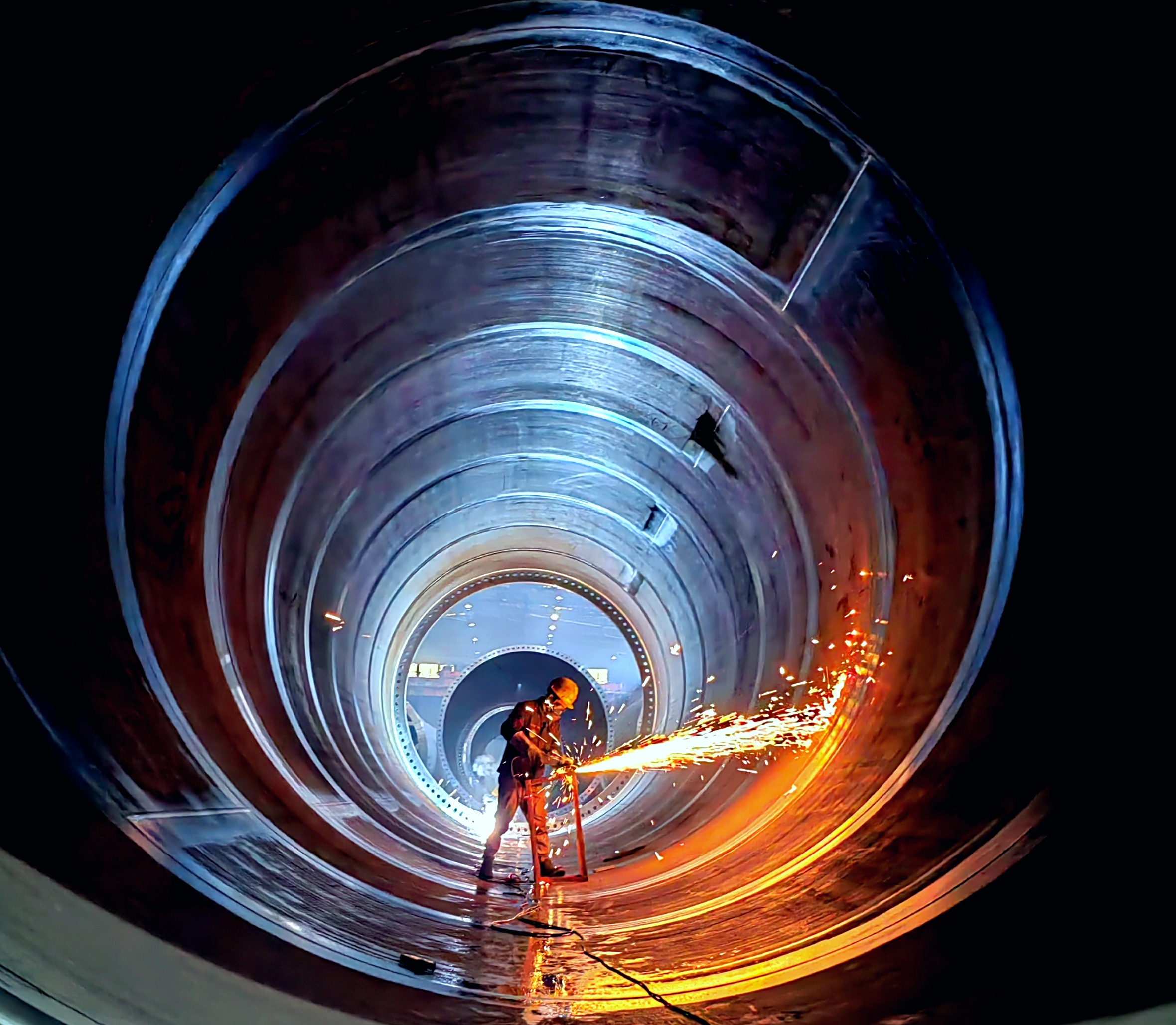 在中國二冶包頭鋁業(yè)達(dá)茂旗120萬千瓦風(fēng)電塔筒制作現(xiàn)場,工人們正熱火朝天地生產(chǎn)趕工,不時(shí)傳來的機(jī)器轟鳴聲、工人呼喊聲、設(shè)備運(yùn)轉(zhuǎn)聲,成為企業(yè)鉚足干勁開新局的生動(dòng)寫照。